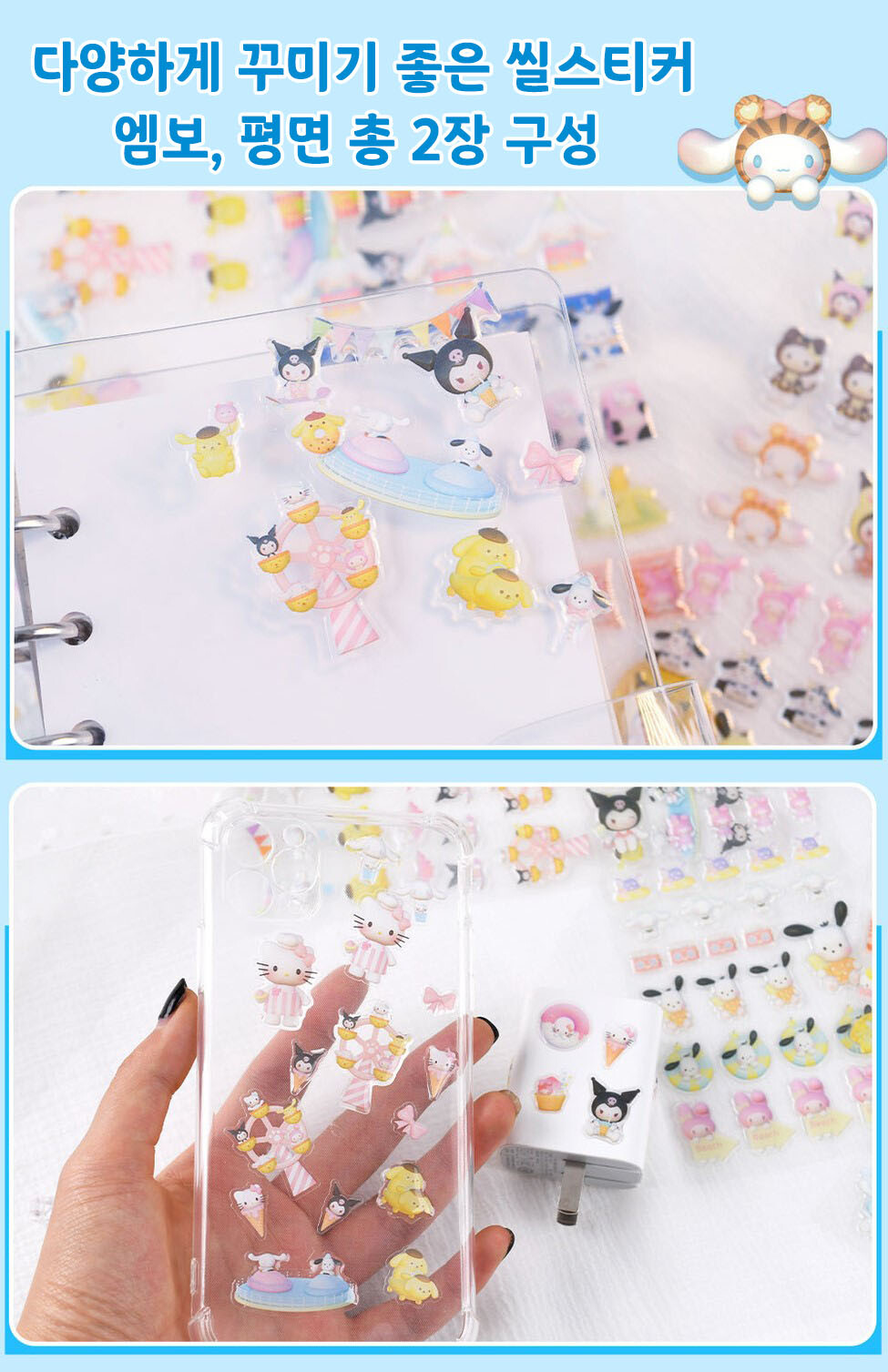 산리오 엠보 씰스티커_2매입