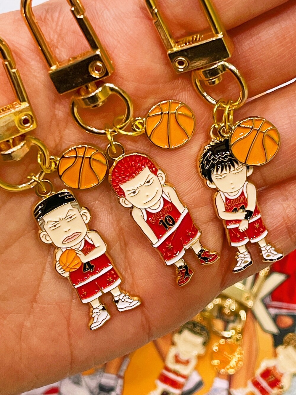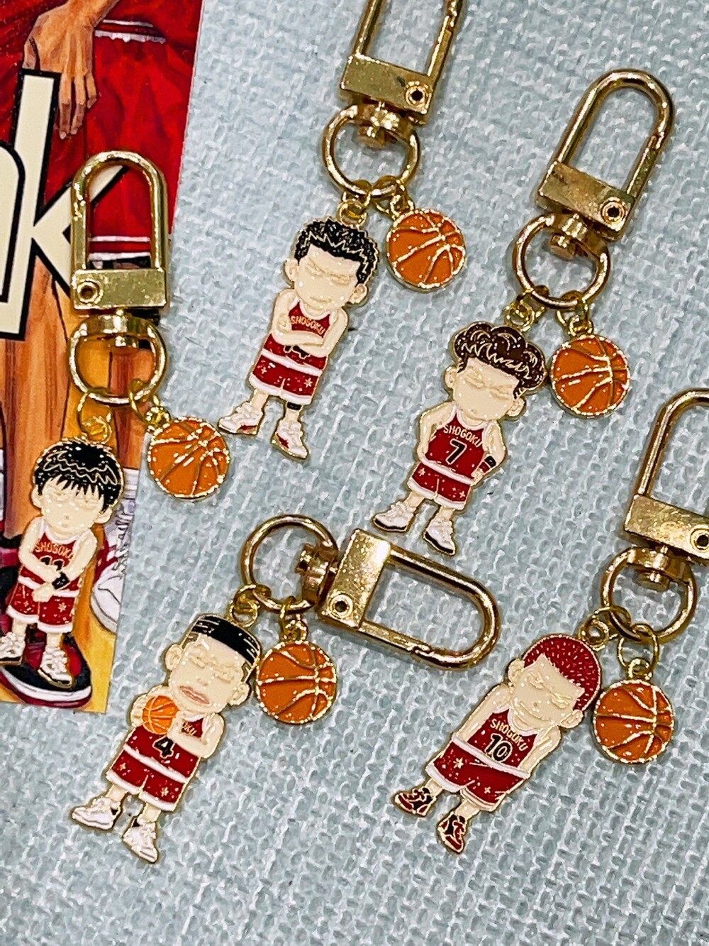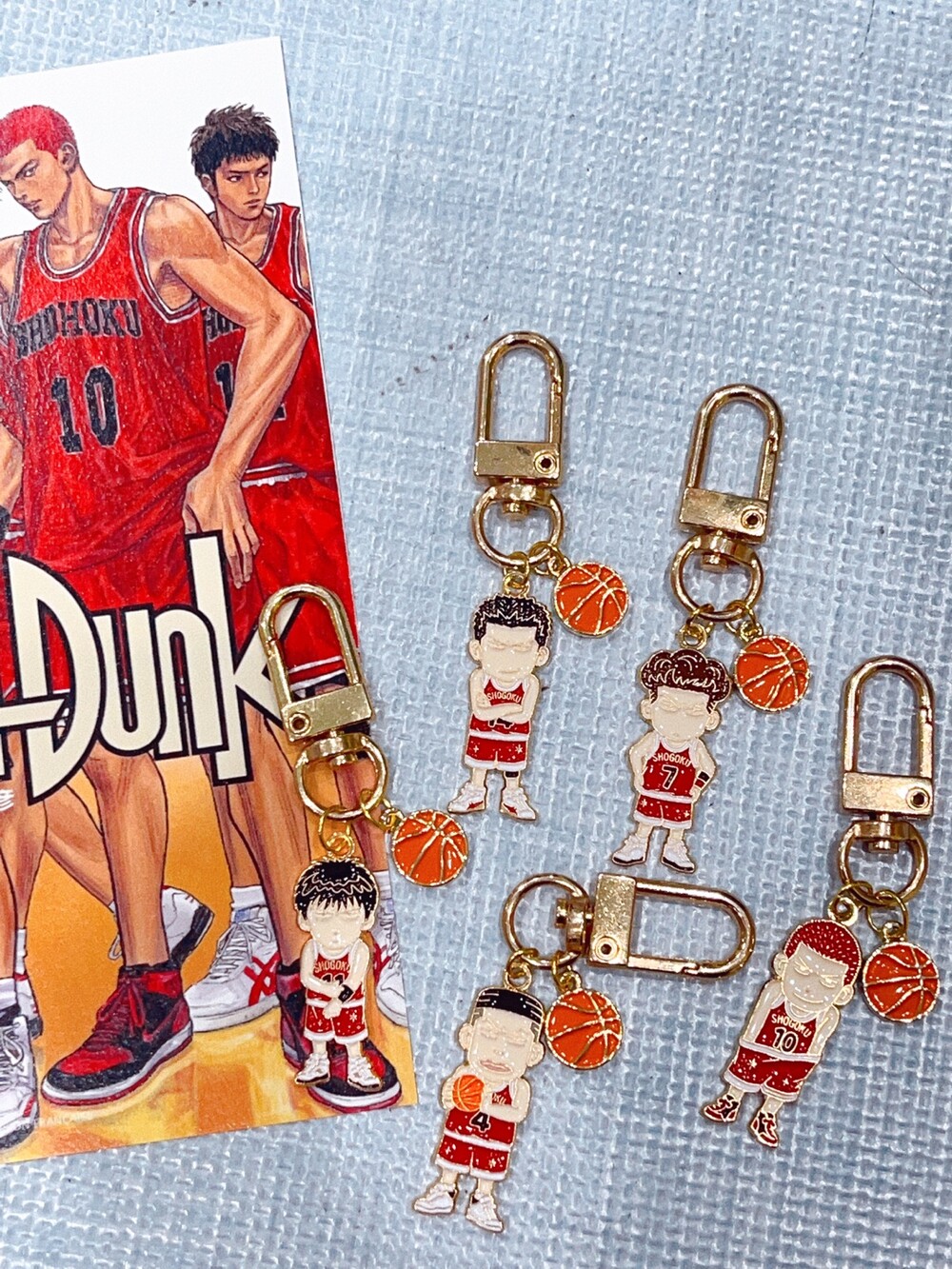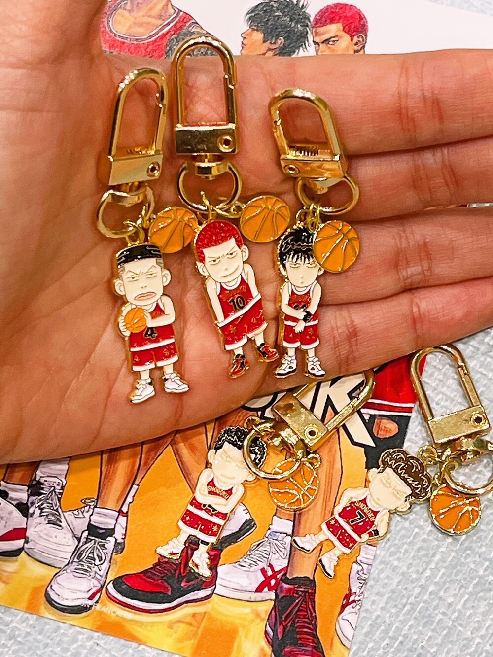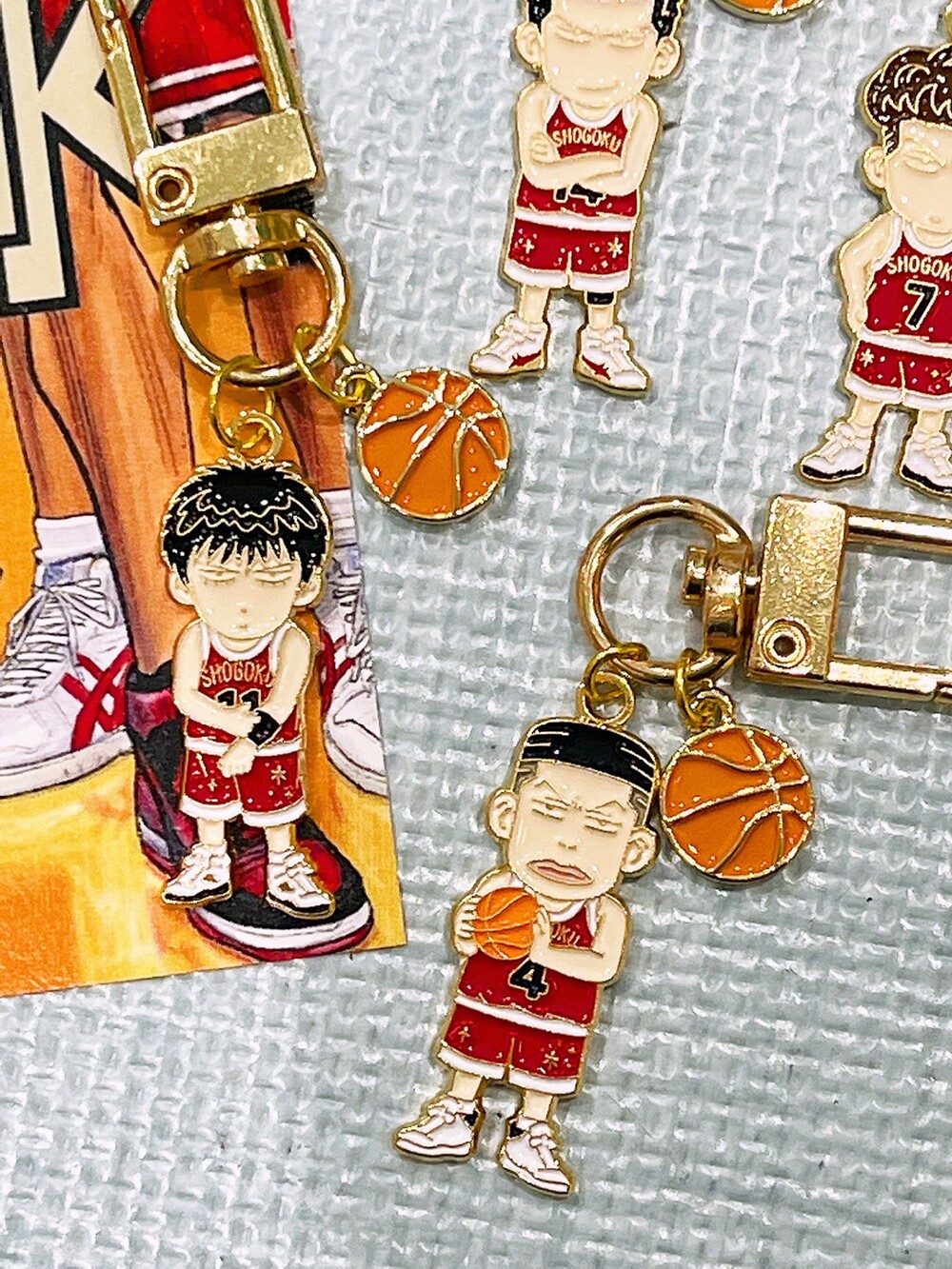 귀여운 농구공 팬던트가 같이 달린 슬램덩크 캐릭터 메탈 키링 입니다 :)